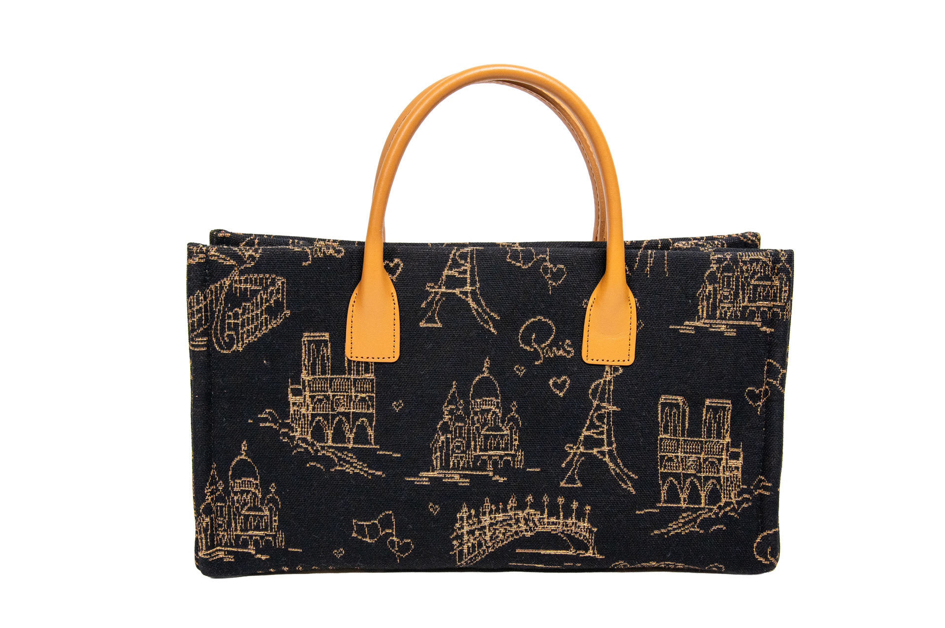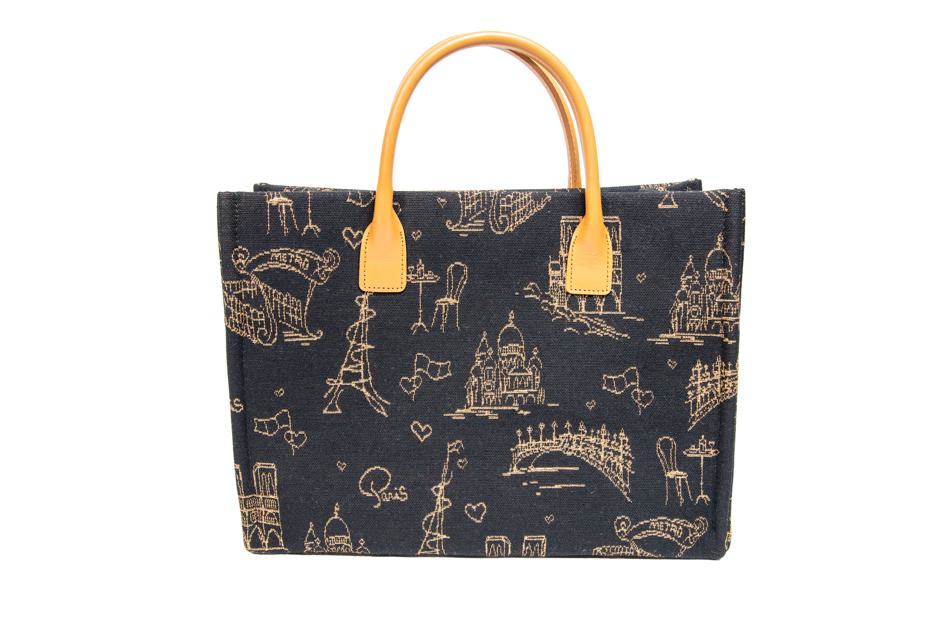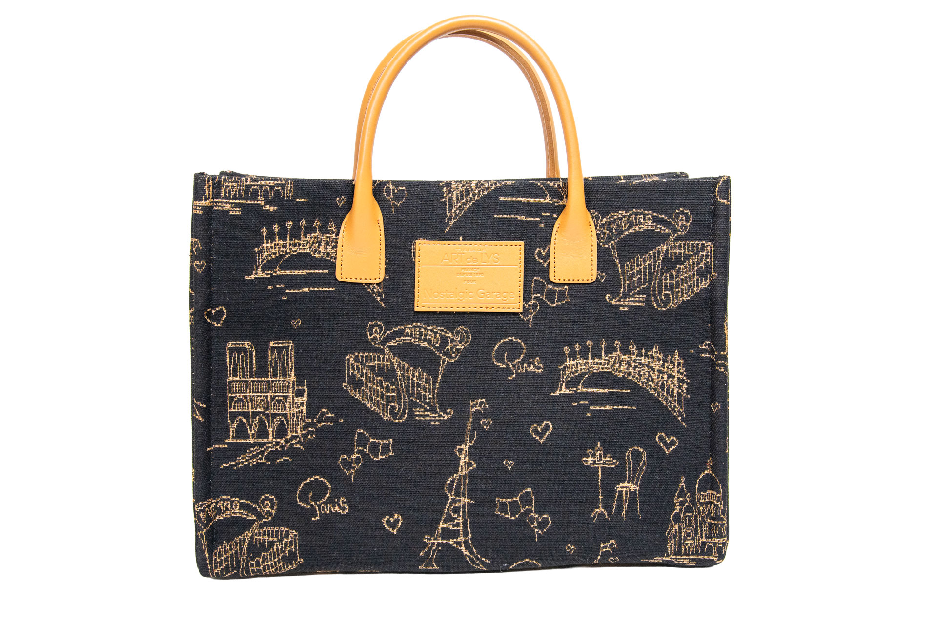 フランスの至宝「ART de LYS」の機(はた)から生まれた、息を呑むほどに美しいテキスタイル。 漆黒の背景に、ゴールドの糸で細密に描き出されたのは、ノートルダム大聖堂やエッフェル塔、そしてパリの街角を彩る美しい橋の数々。