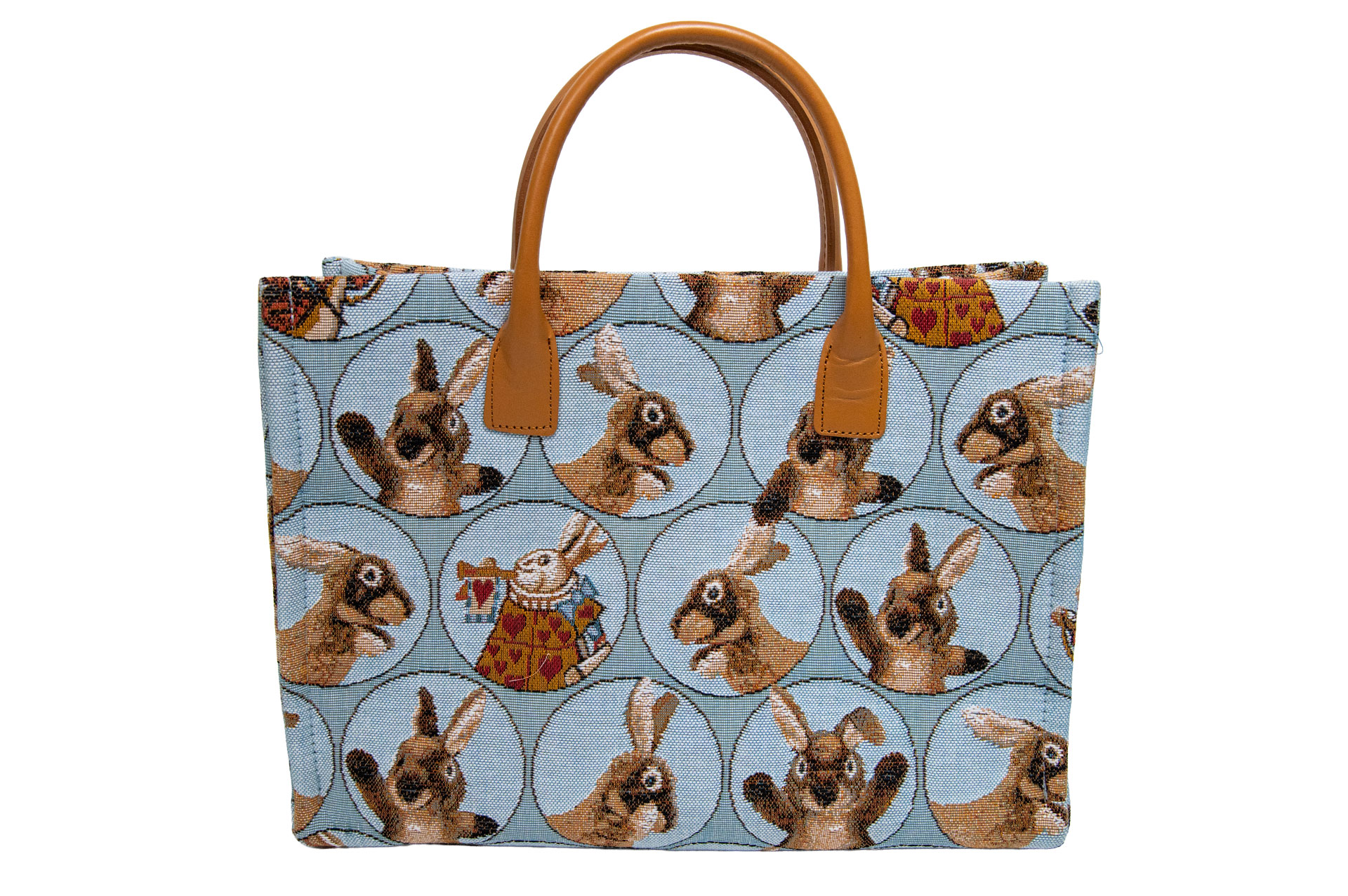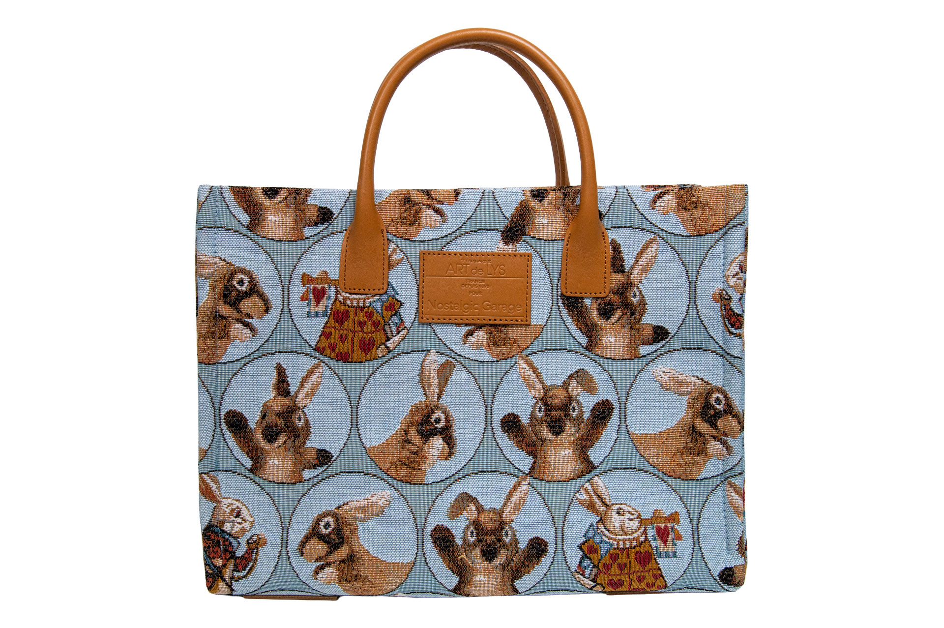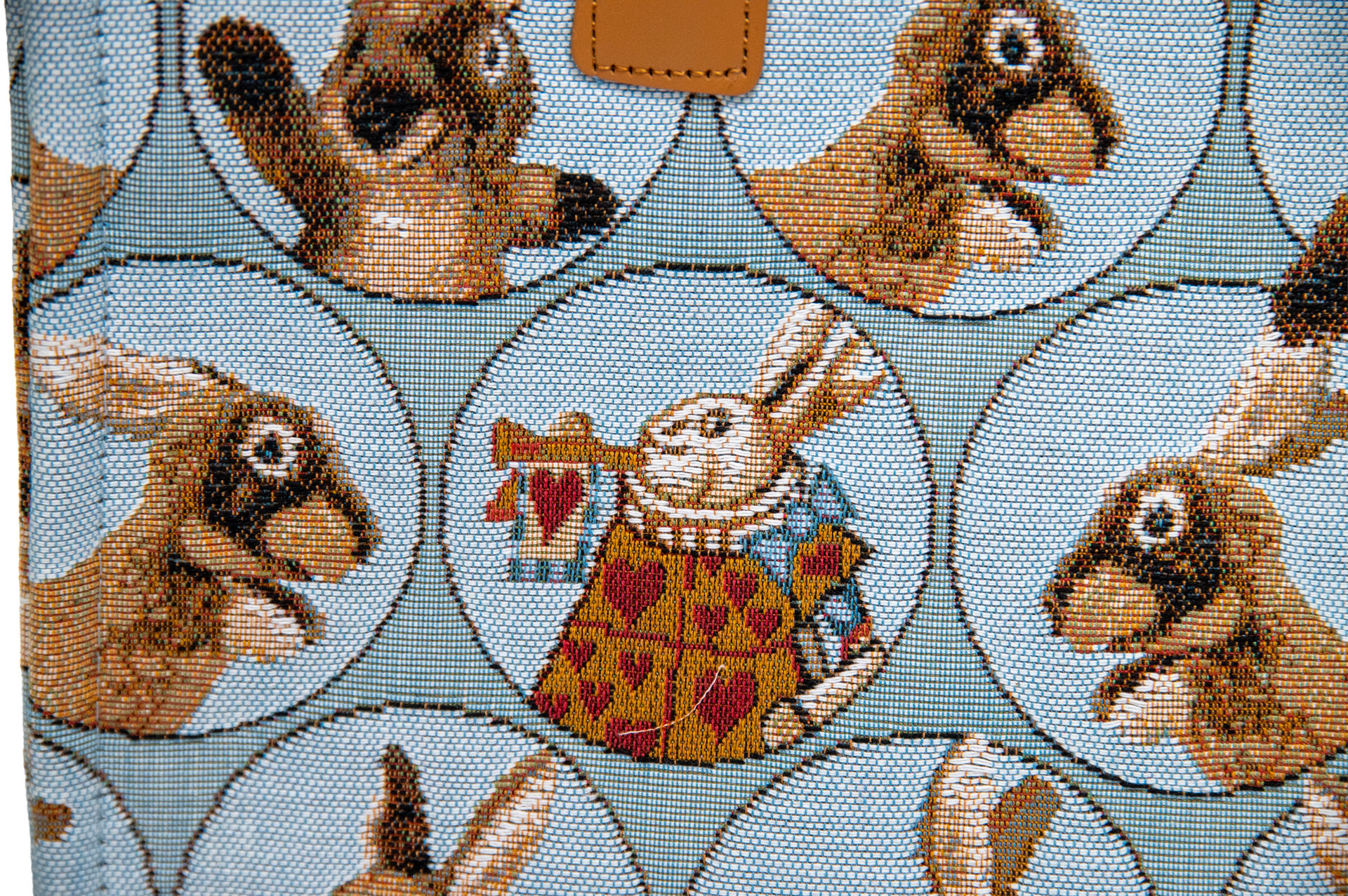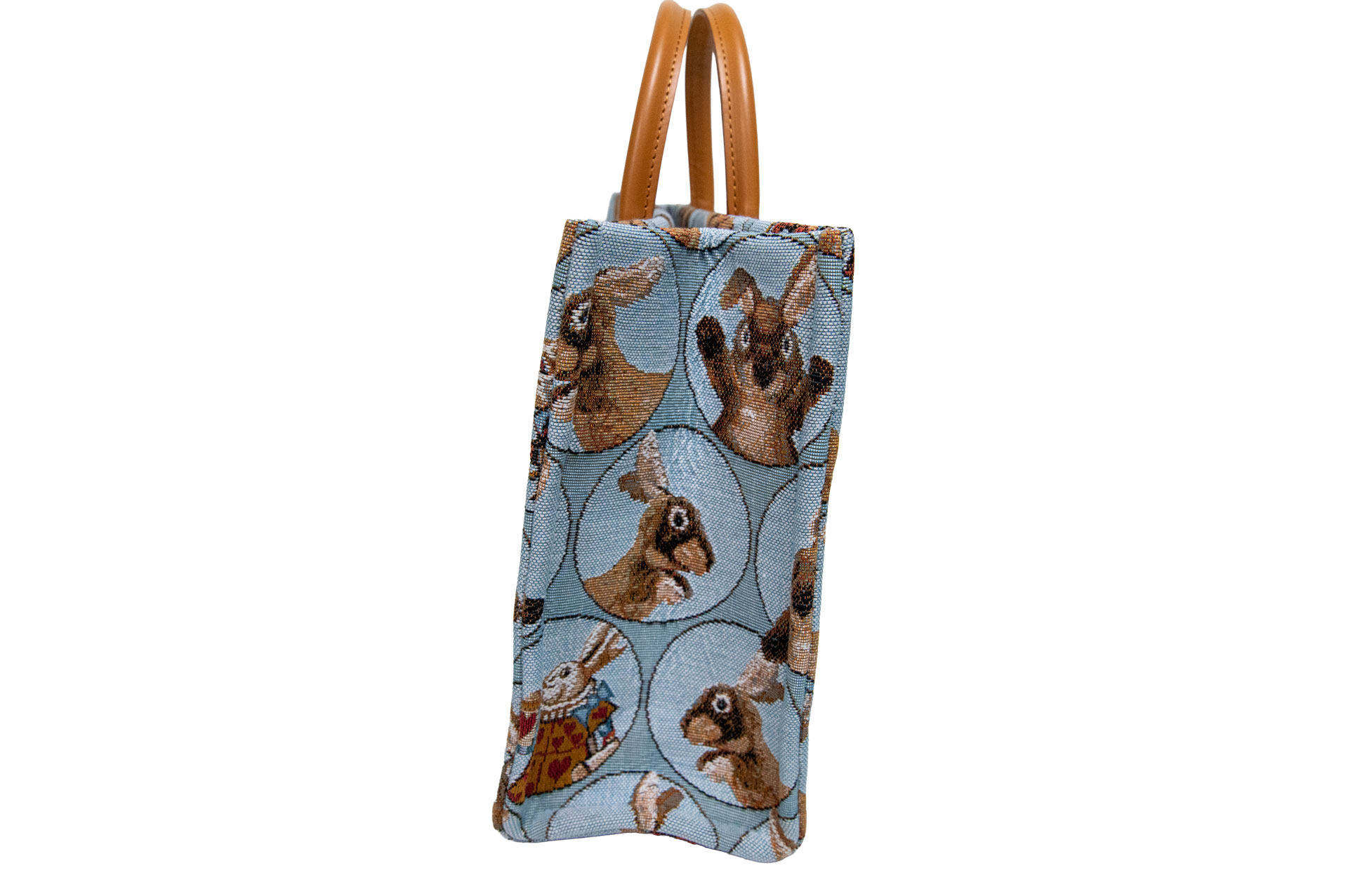 伝統が紡ぐ、最高級の質感: 125年以上の歴史を誇るART de LYSの織機で織り上げられた生地は、綿・レーヨン・ポリエステルの混紡による、しっとりと上品な光沢が特徴。ミケーレのシルエットからアリスのうさぎの細かな表情まで、織りだけで見事に描き出されています。