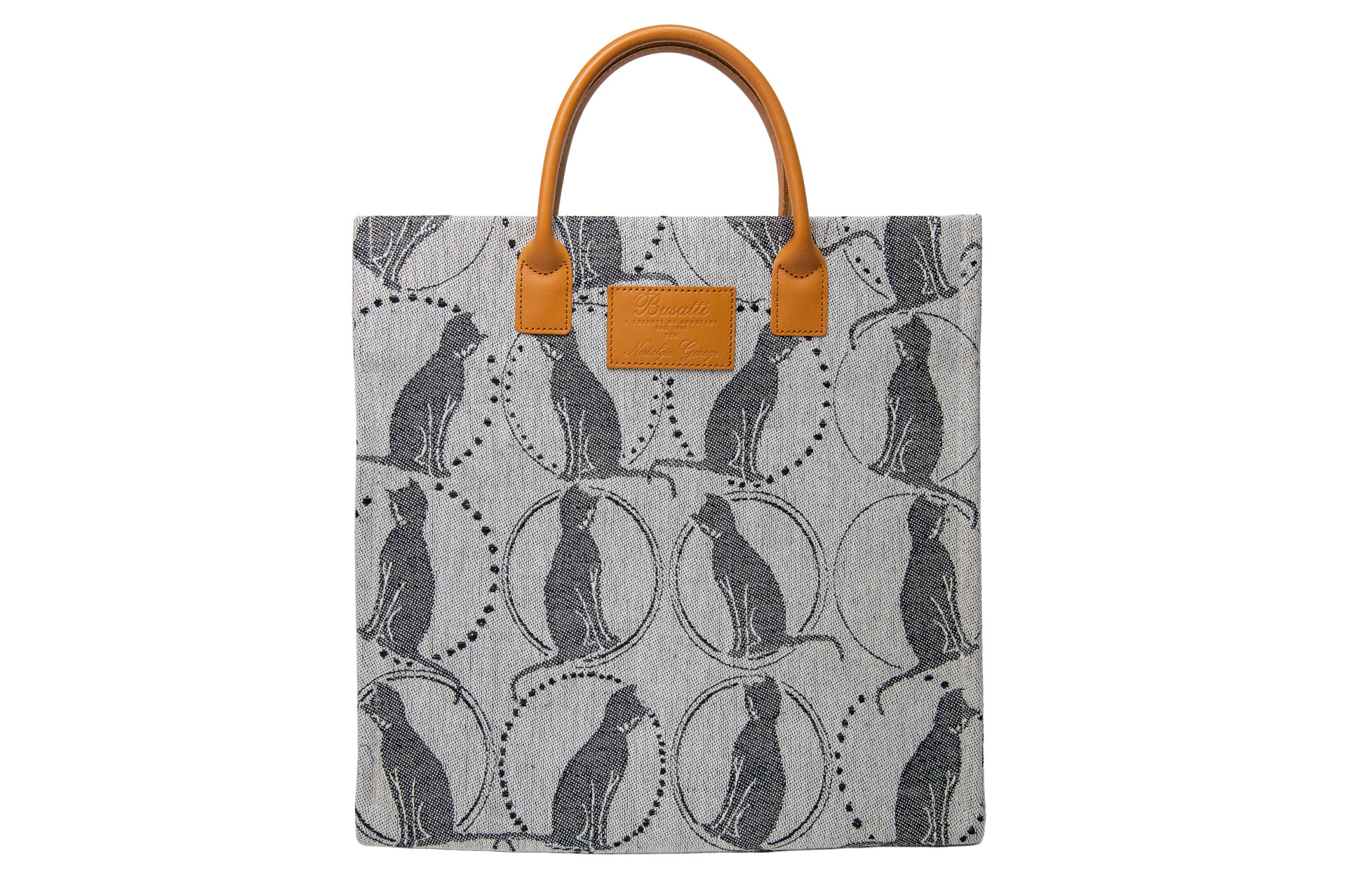描かれているのは、凛とした佇まいでこちらを見つめる猫のシルエット。Bussatti社が培ってきた伝統のシャトル織機により、猫の柔らかな曲線と繊細な表情が、リネンコットンの豊かな風合いの中に息づいています。ブランド同士の絆が生んだ、まさに「友情の証」ともいえるスペシャルな一品です。