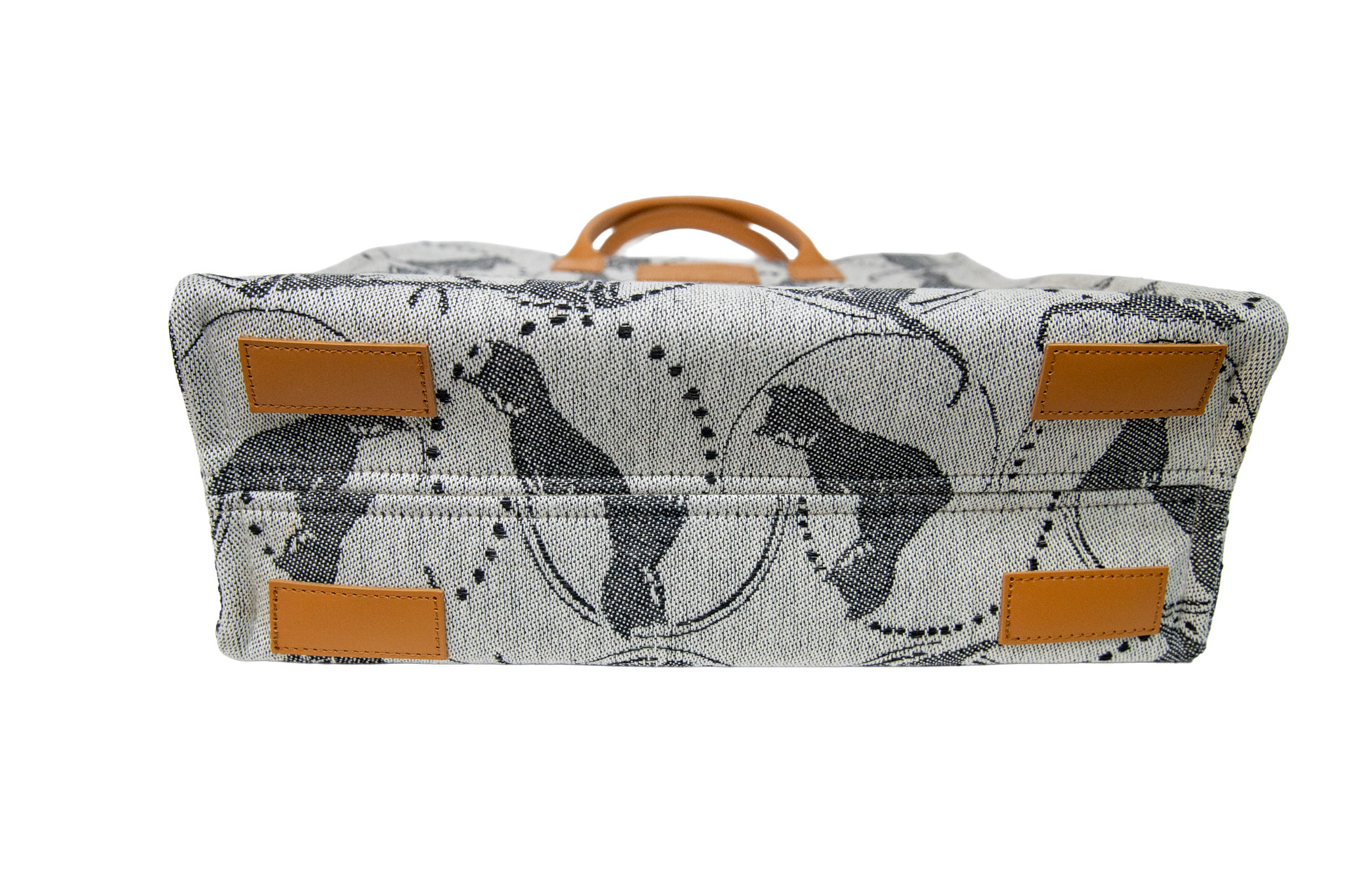 ノートPCやA4ドキュメント、雑誌も余裕を持って収まる大容量設計。縦長のフォルムが猫の総柄を美しく見せ、スタイリッシュな印象を与えます。