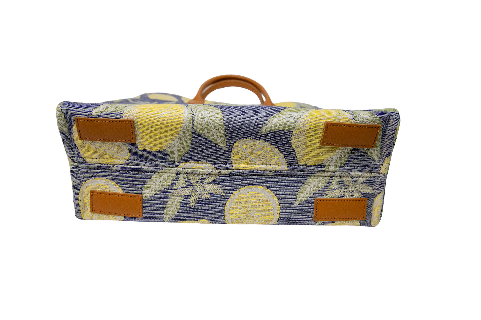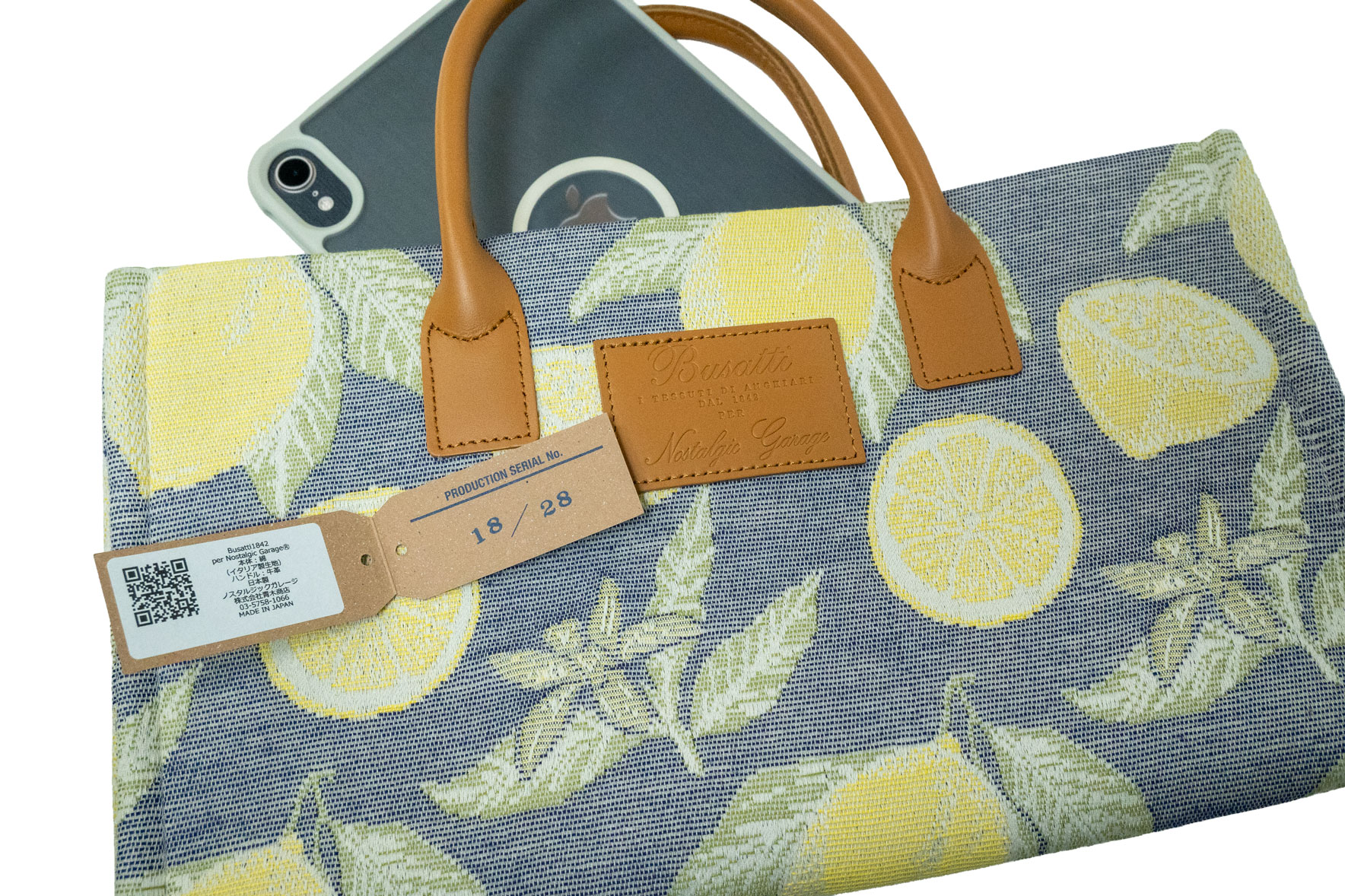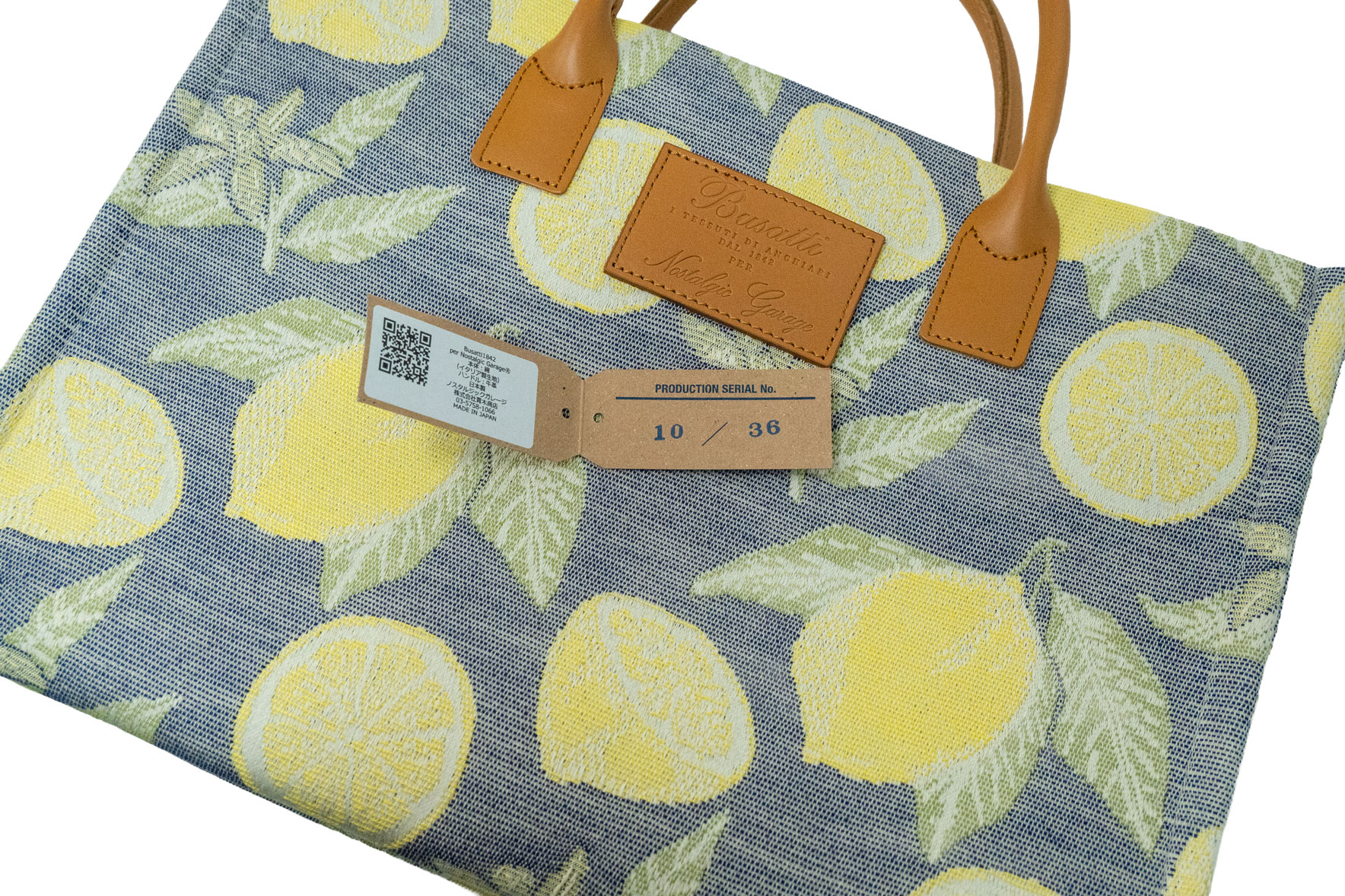 待望の縦長大容量モデル。ノートPCや雑誌をアートのように持ち運べるサイズ感で、レモン柄のダイナミックな美しさを存分に楽しめる一品です。