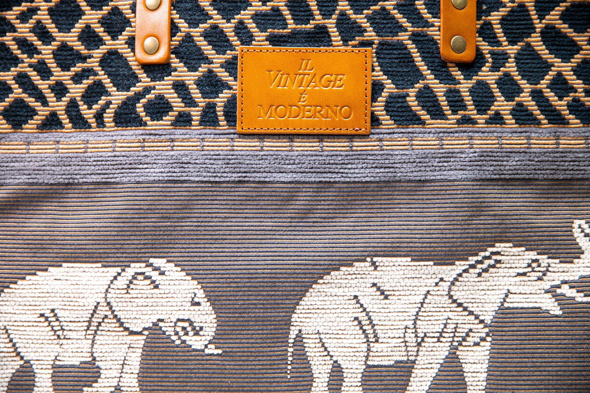 約80年前のヴィンテージファブリックが持つ独特の風合いと、象の親子が歩むノスタルジックな風景。それは単なるバッグの枠を超え、歴史を携えて歩くような特別な体験を日常に運びます。