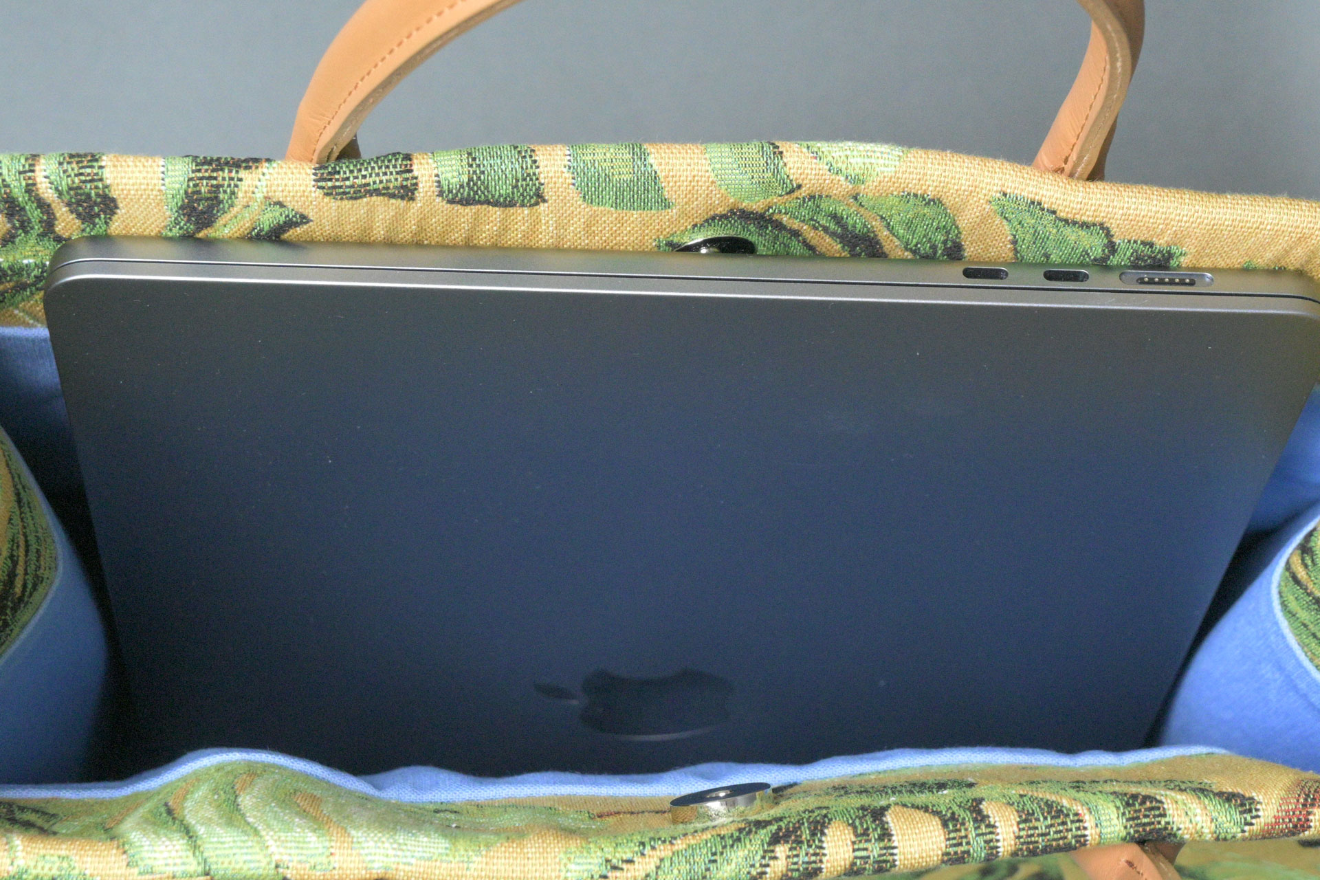 サイズは、シリーズ最大級のLARGE。14インチのMacBook Airが縦にすっぽりと収まるサイズ感で、日常の荷物が多い方はもちろん、ビジネスシーンに遊び心を加えたい方にも最適な大容量モデルです。