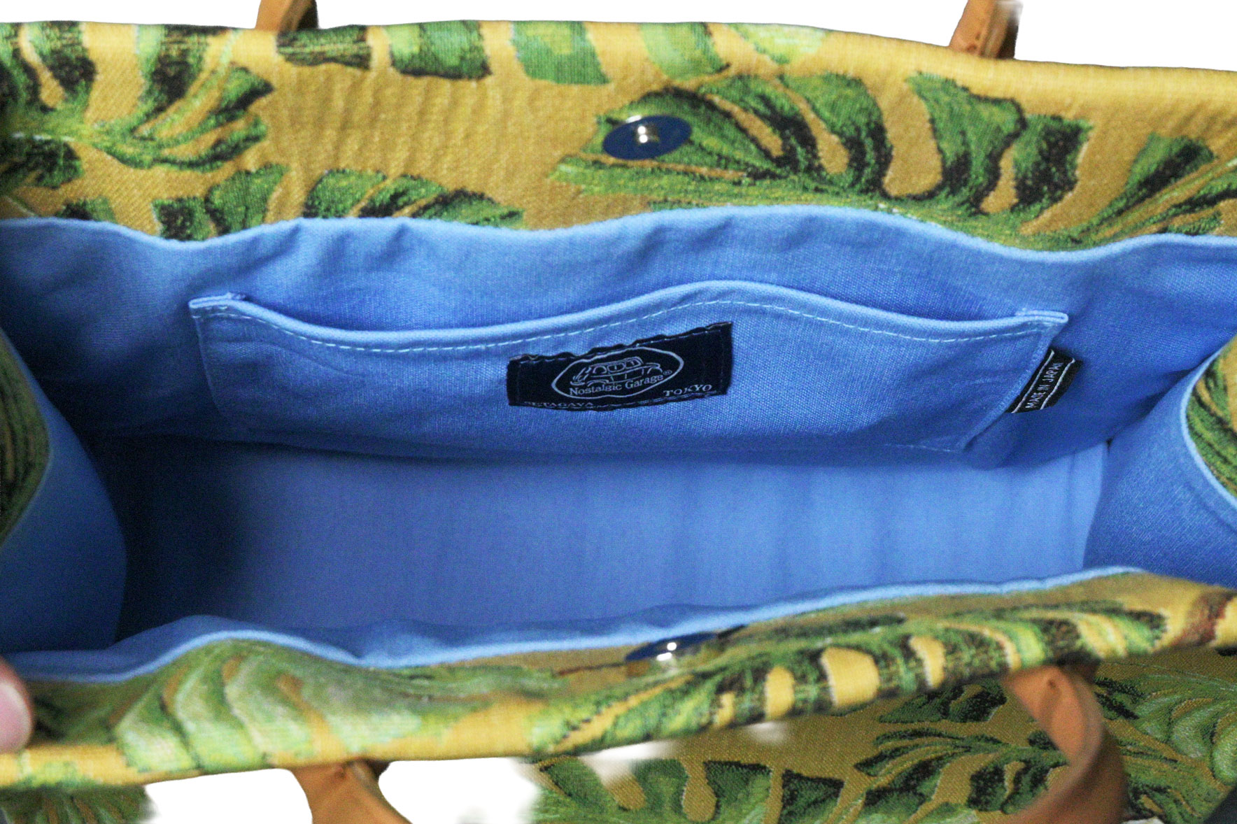 ハンドルには、この華やかなテキスタイルを品良く引き立てる明るめの牛革を採用。熟練した日本の職人による仕立てにより、複雑なジャガード生地の魅力を最大限に引き出しつつ、実用的な強度も確保しました。
