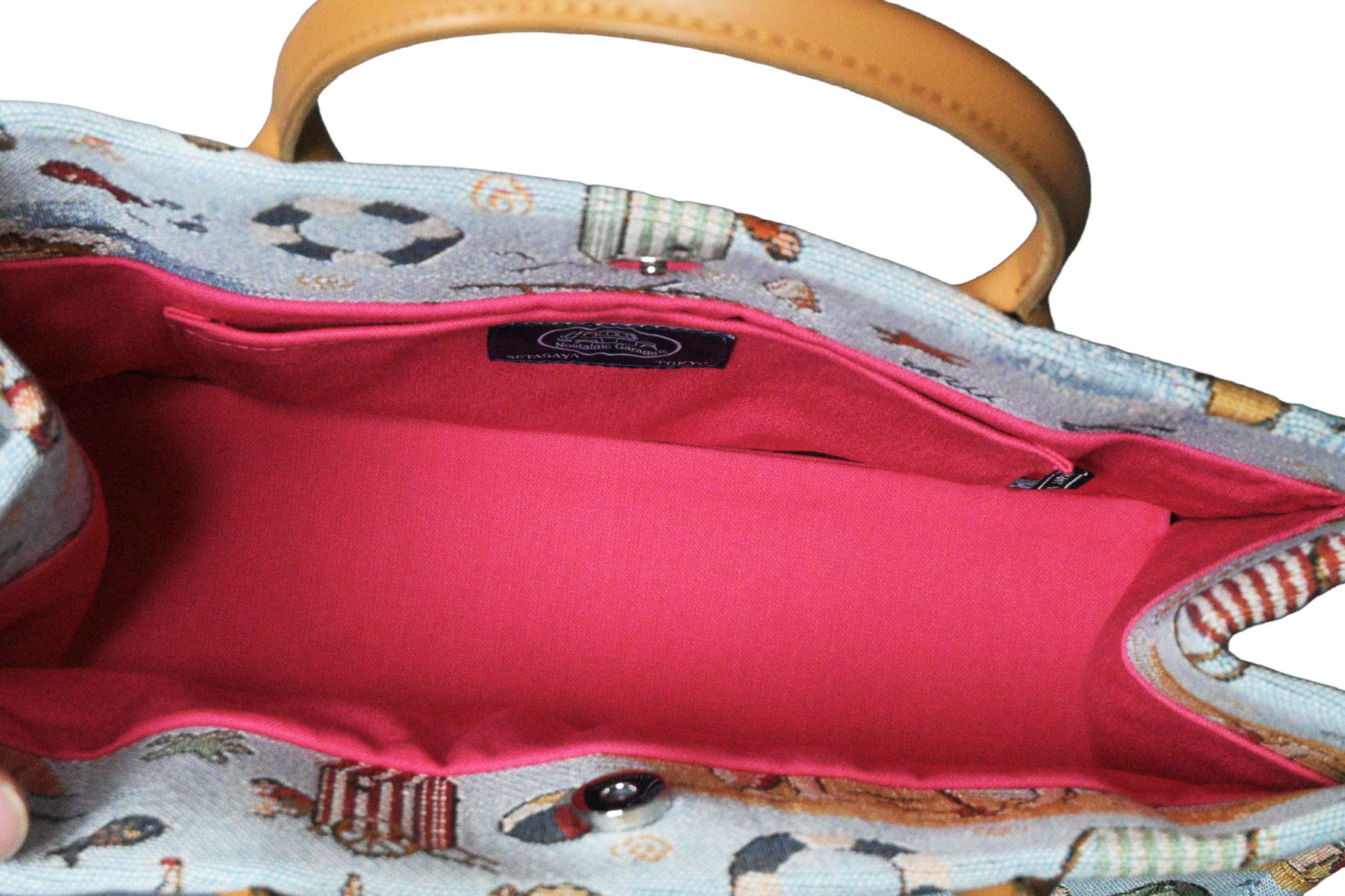 ハンドルには上質な牛革を使用し、フランス製の気品ある生地を日本の職人が丁寧に仕立てることで、大人が持つにふさわしい「上質な遊び心」を感じさせるバッグに仕上げました。