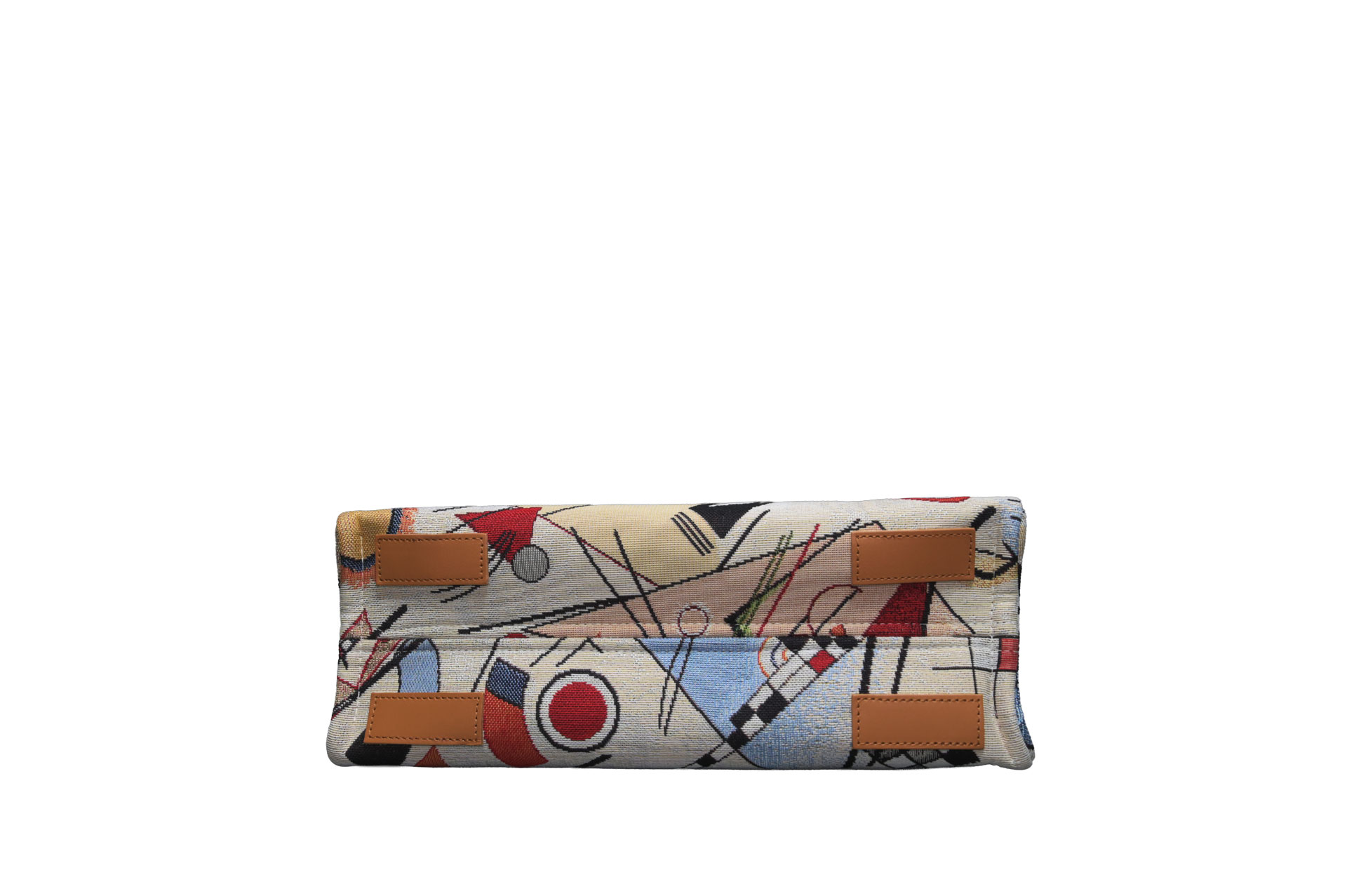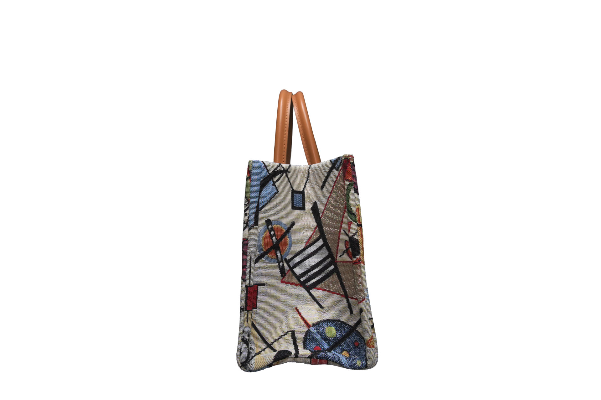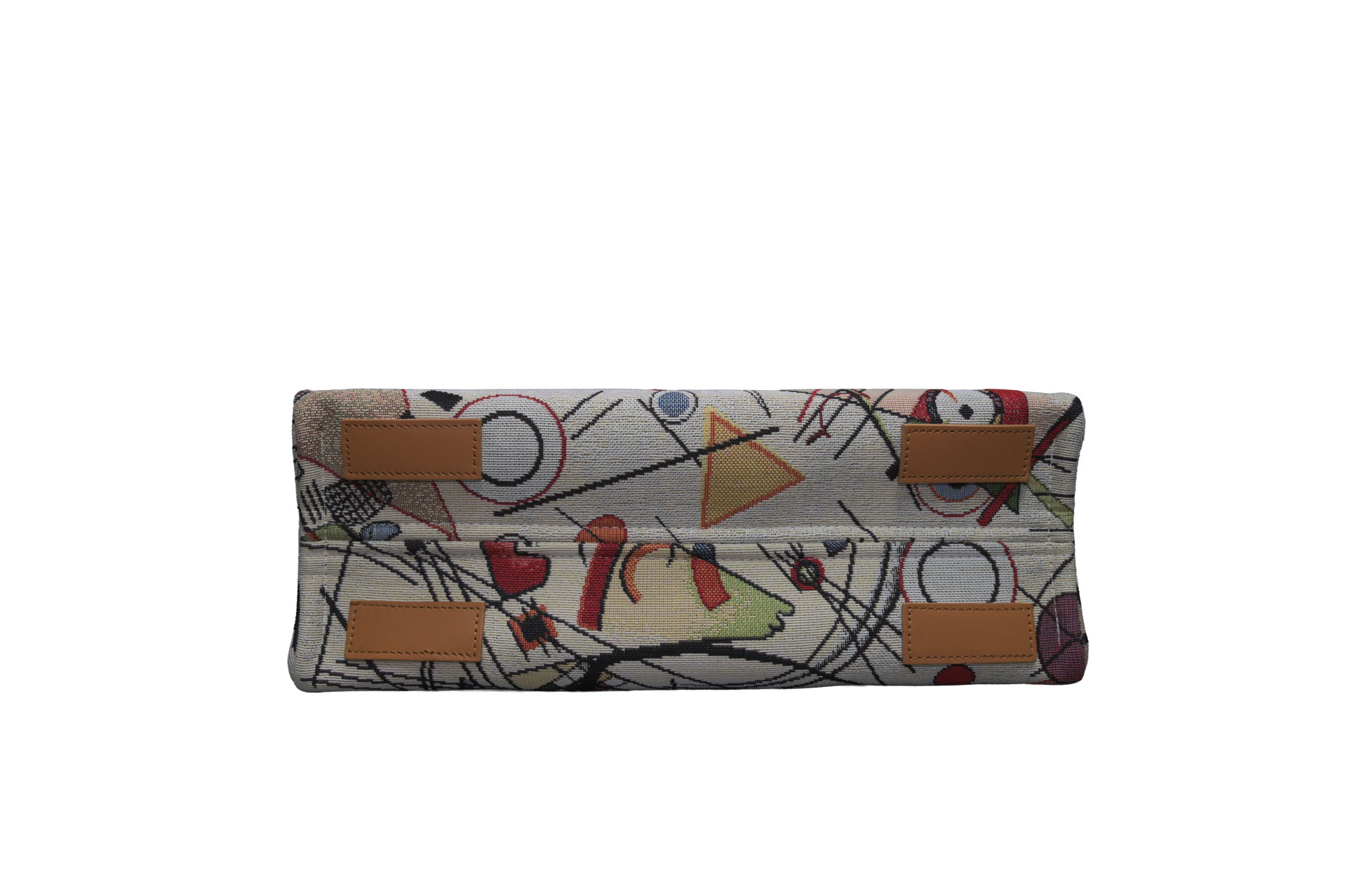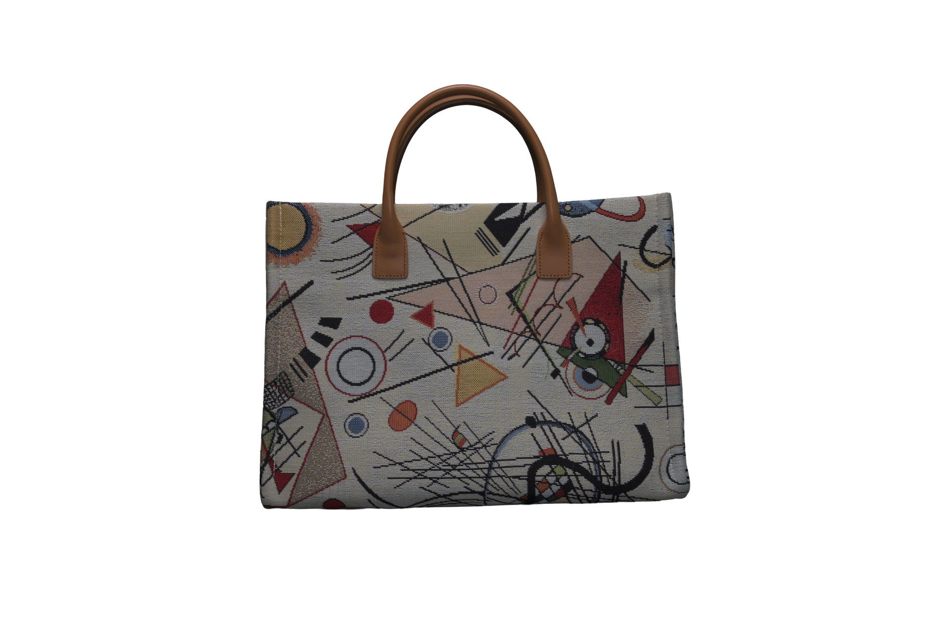 幾何学的なライン、自由な曲線、そして計算された色彩のコントラスト。一見大胆なテキスタイルですが、落ち着いたベージュのベースカラーと上質なイタリアンカウレザーを組み合わせることで、大人の日常に馴染むエレガントな仕上がりとなっています。