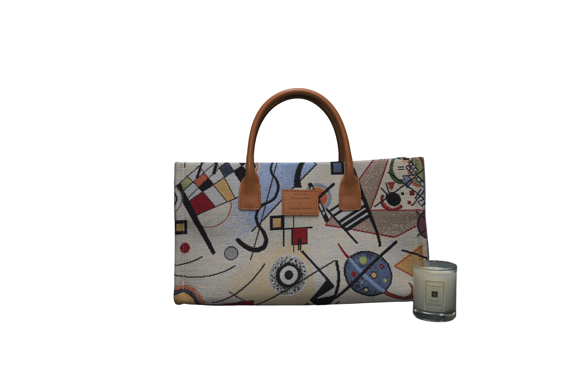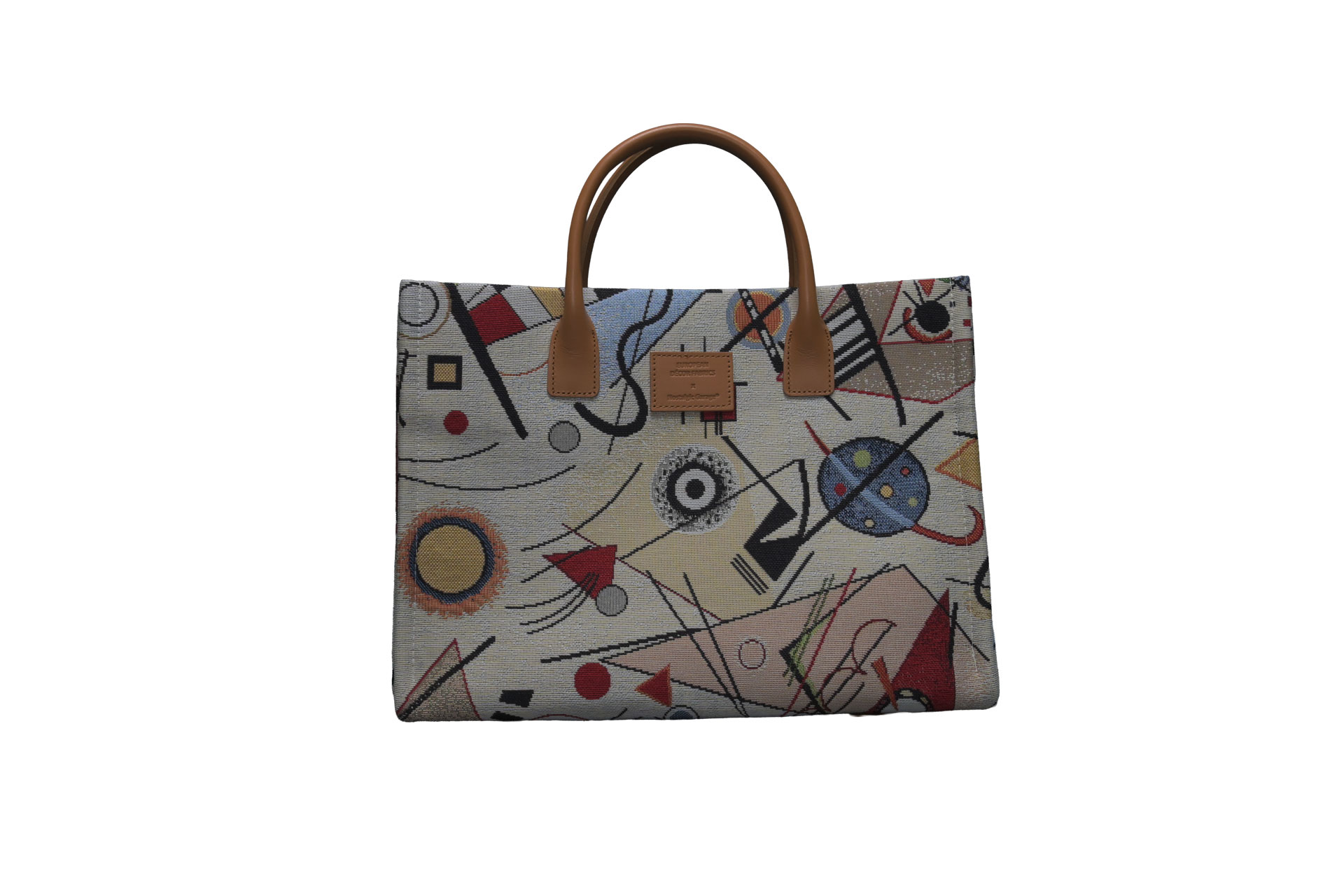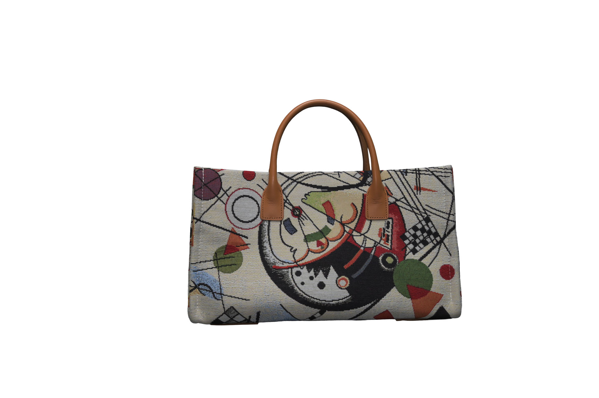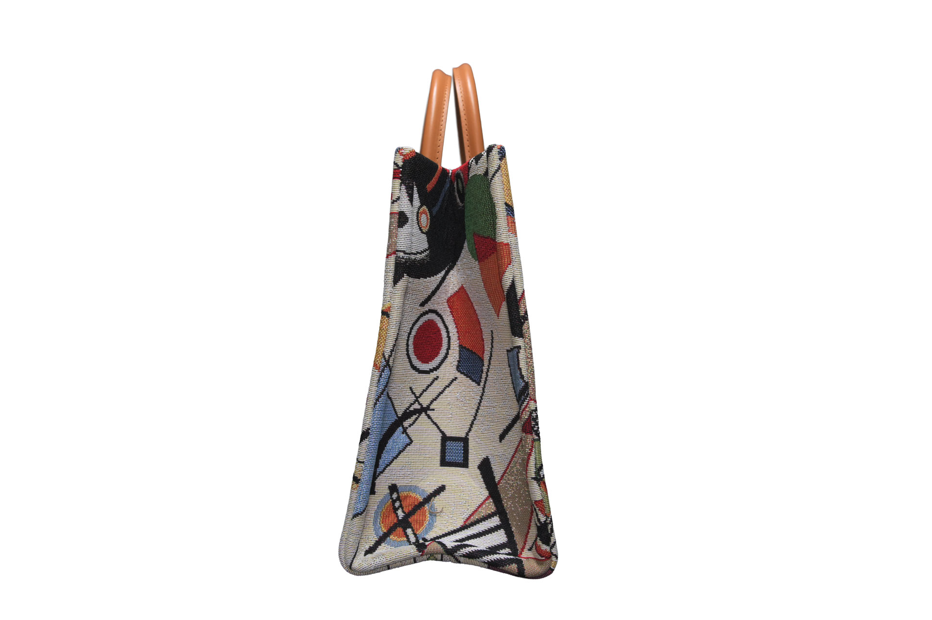 幾何学的なライン、自由な曲線、そして計算された色彩のコントラスト。一見大胆なテキスタイルですが、落ち着いたベージュのベースカラーと上質なイタリアンカウレザーを組み合わせることで、大人の日常に馴染むエレガントな仕上がりとなっています。