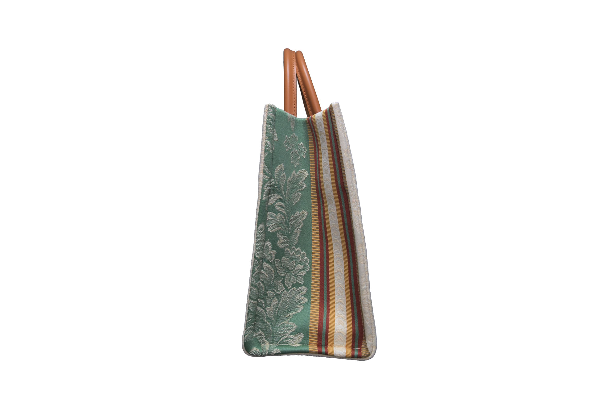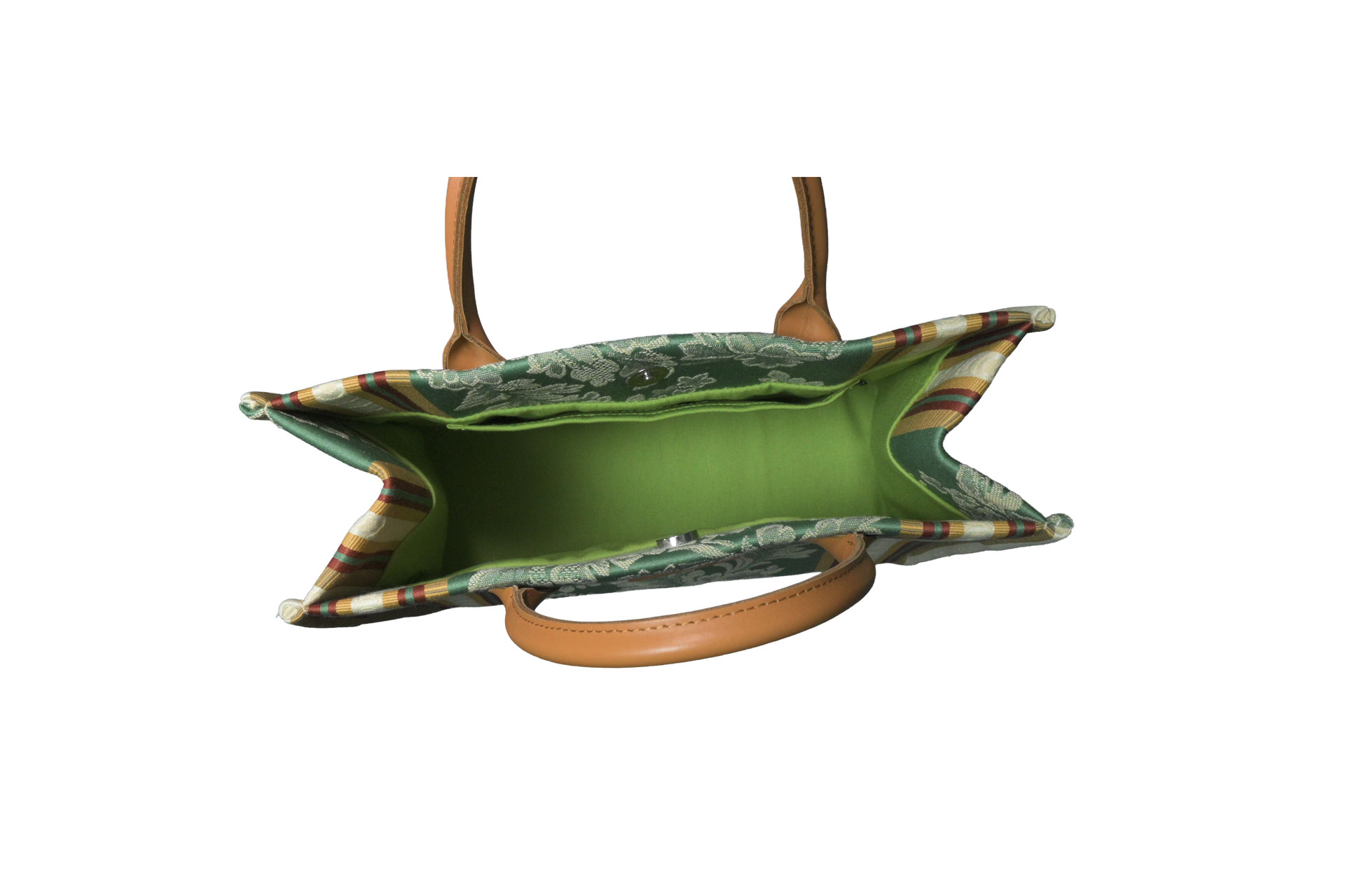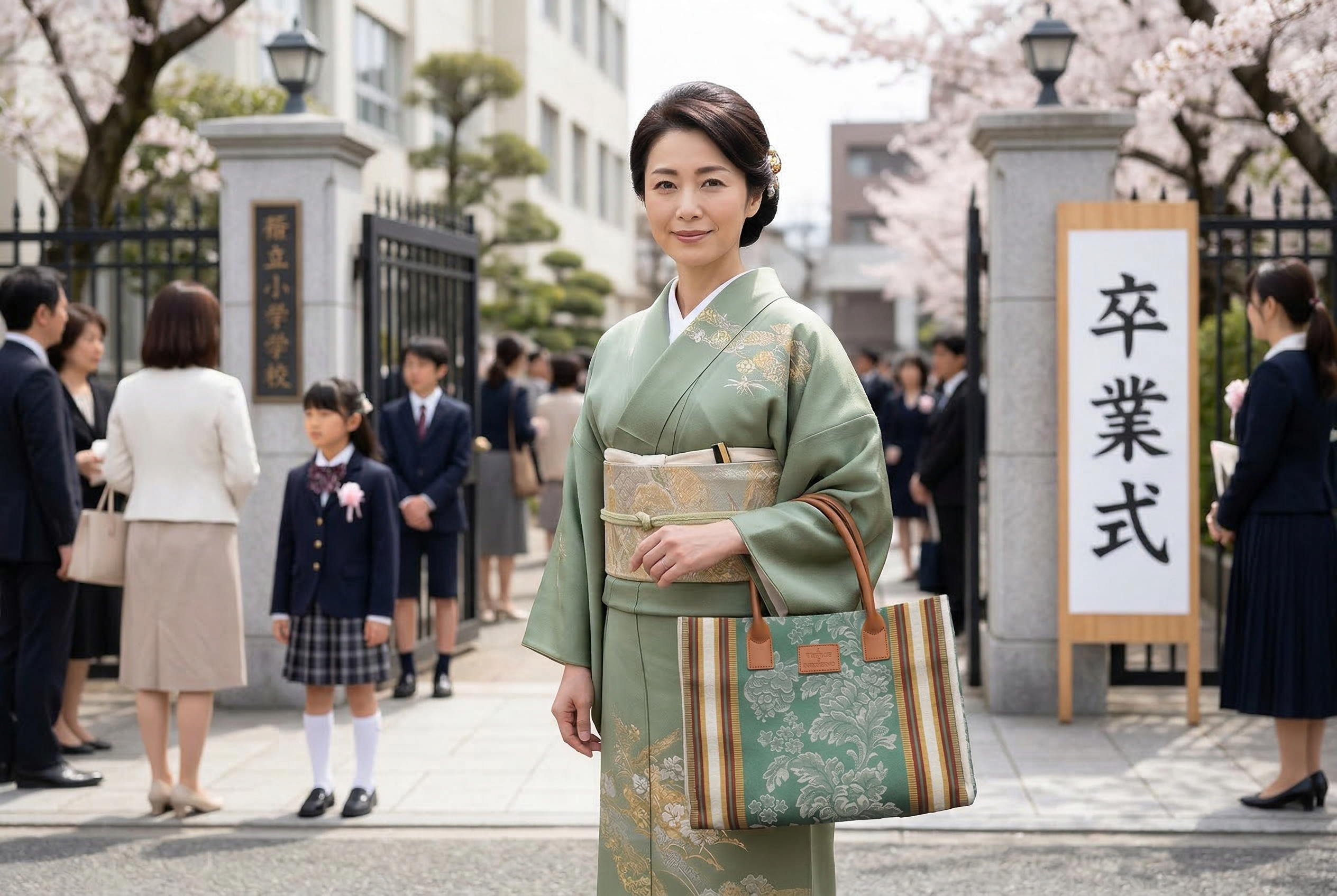 和装・着物スタイル: 特筆すべきは、和装との驚くほどの相性の良さです。繊細なダマスク紋様は、まるで高級な袋帯のような佇まいを見せ、紬(つむぎ)や小紋、あるいはモダンな柄の着物にも自然に馴染みます。お茶席や観劇、お出かけの際、利休バッグとは一味違う、現代的で洗練された「和」のスタイリングを叶えてくれます。