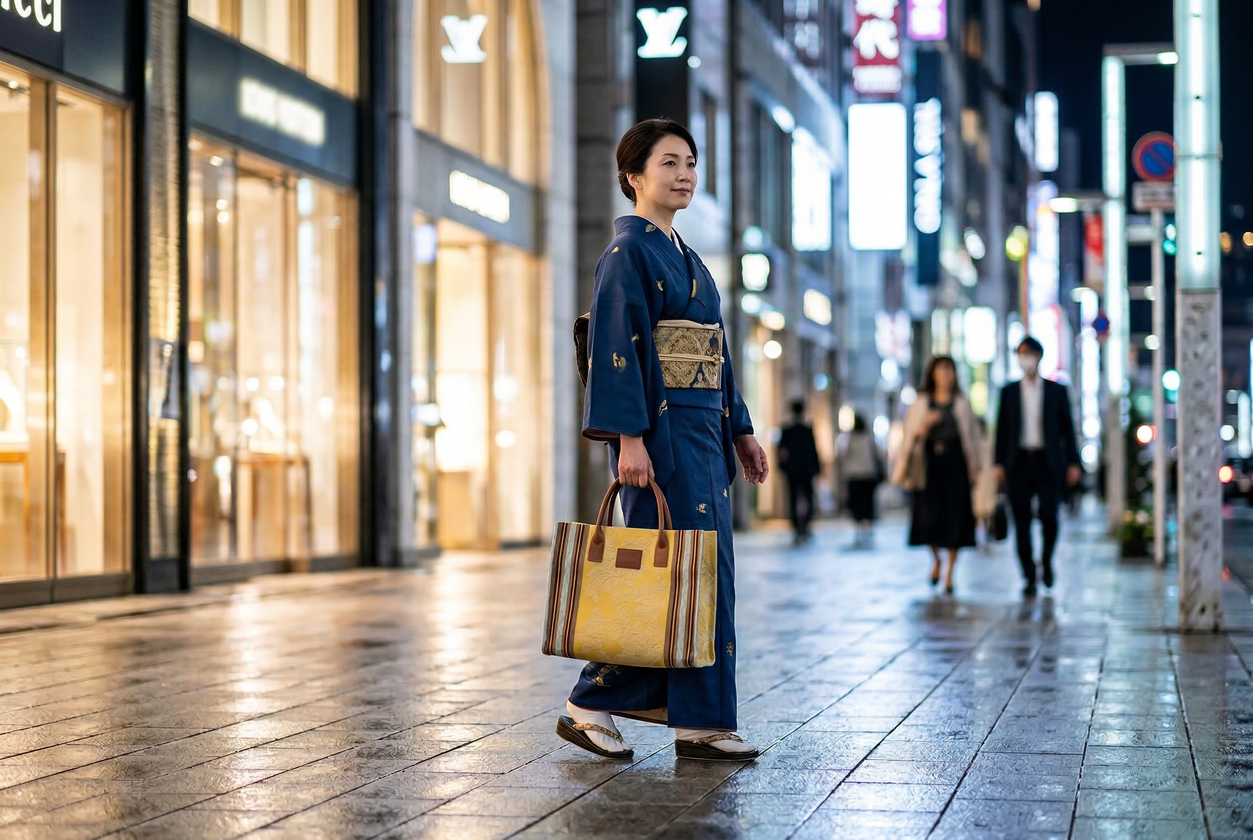 和装・着物スタイル: お着物での外出に、これ以上ないほど重宝する逸品です。 黄金色に近いGIALLOの地色は、紬や小紋、あるいは落ち着いた色無地など、和の色彩と完璧に調和します。織りによる紋様の立体感は「袋帯」のような格式を感じさせ、サブバッグとしてではなく、主役のバッグとして装いを格上げしてくれます。