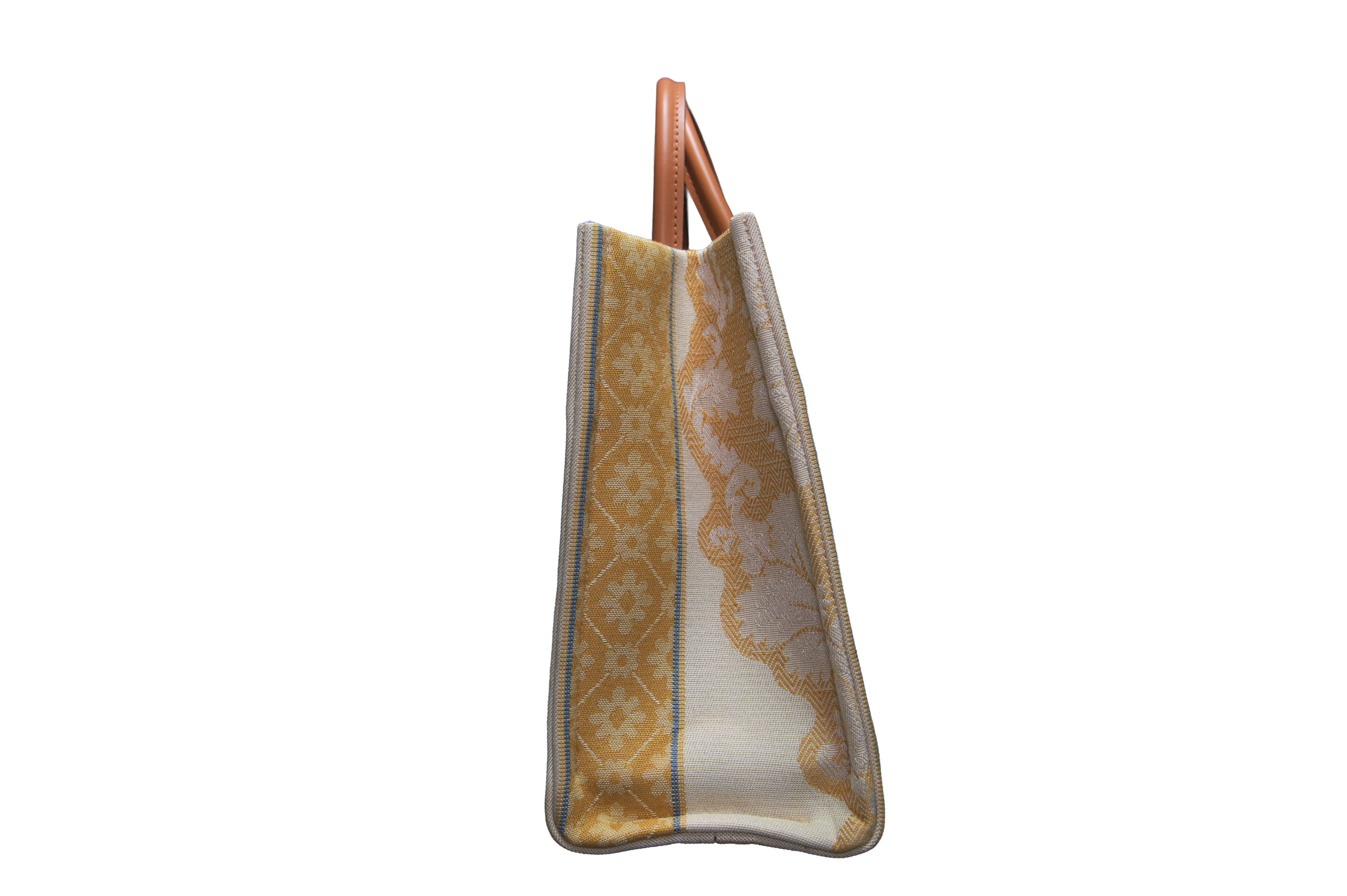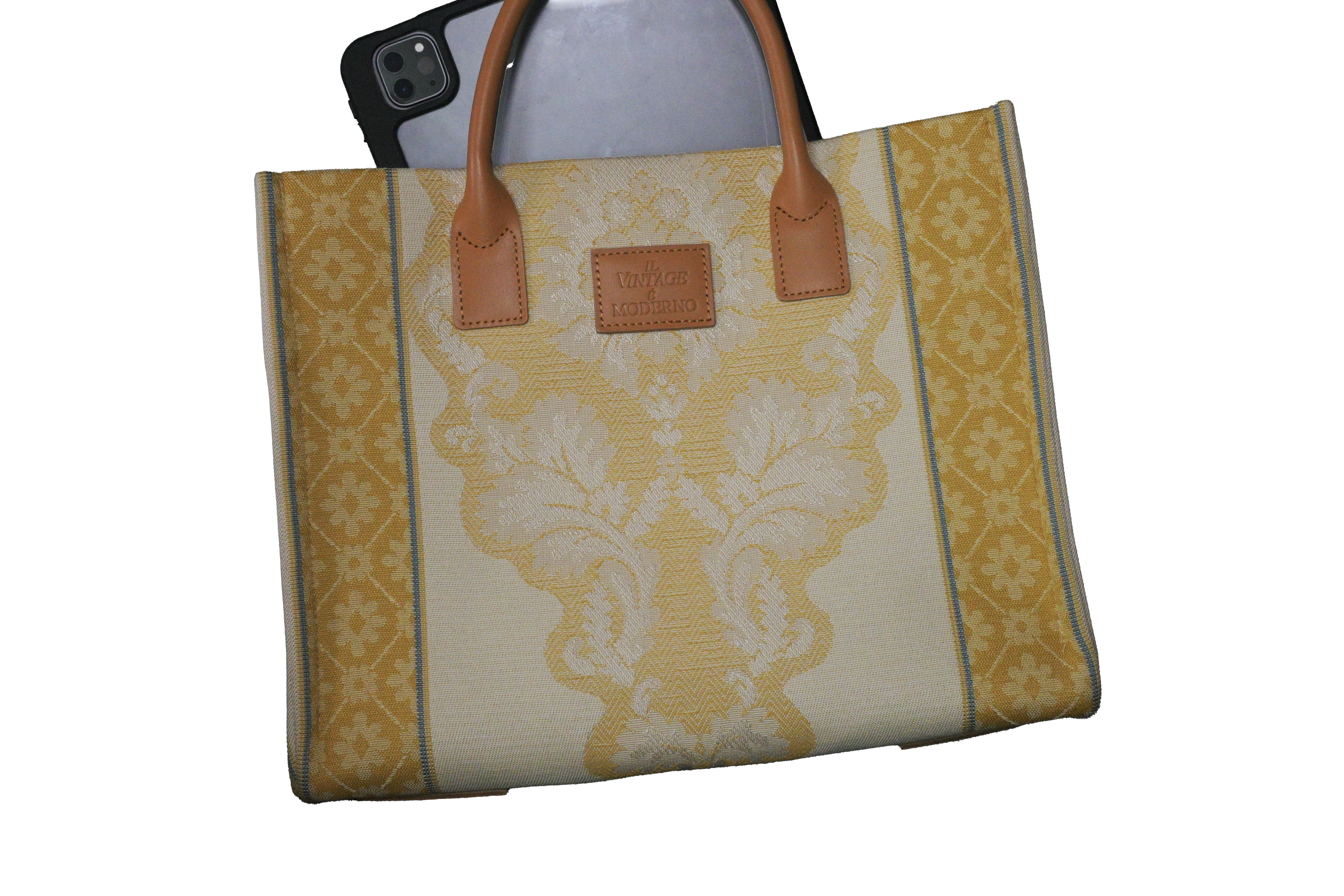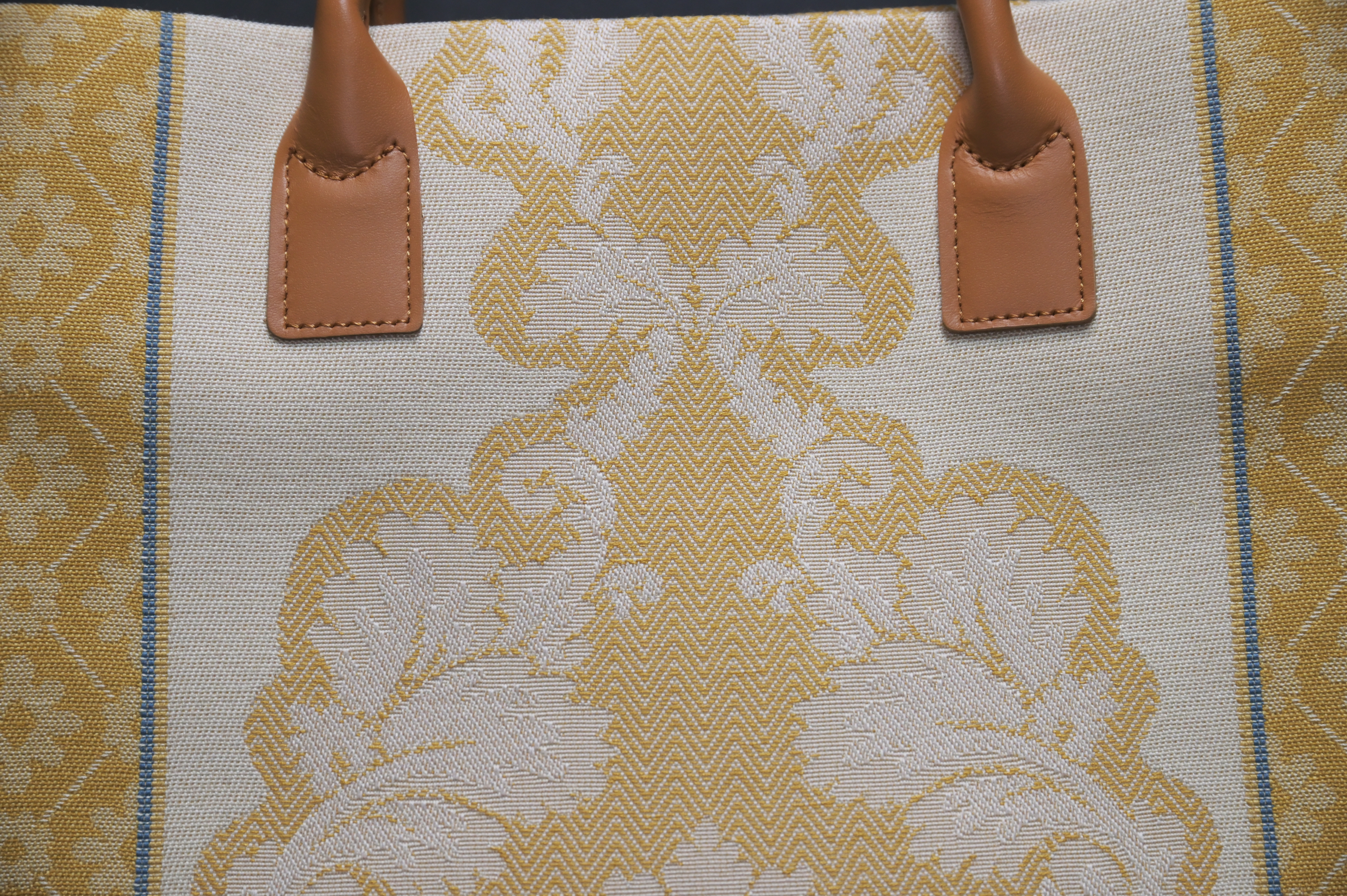 イタリア各地のコレクターの手により、当時のままの鮮やかさで大切に保管されていたこの生地。半世紀近い時を経て、日本の職人の手により現代を闊歩するトートバッグへと生まれ変わりました。