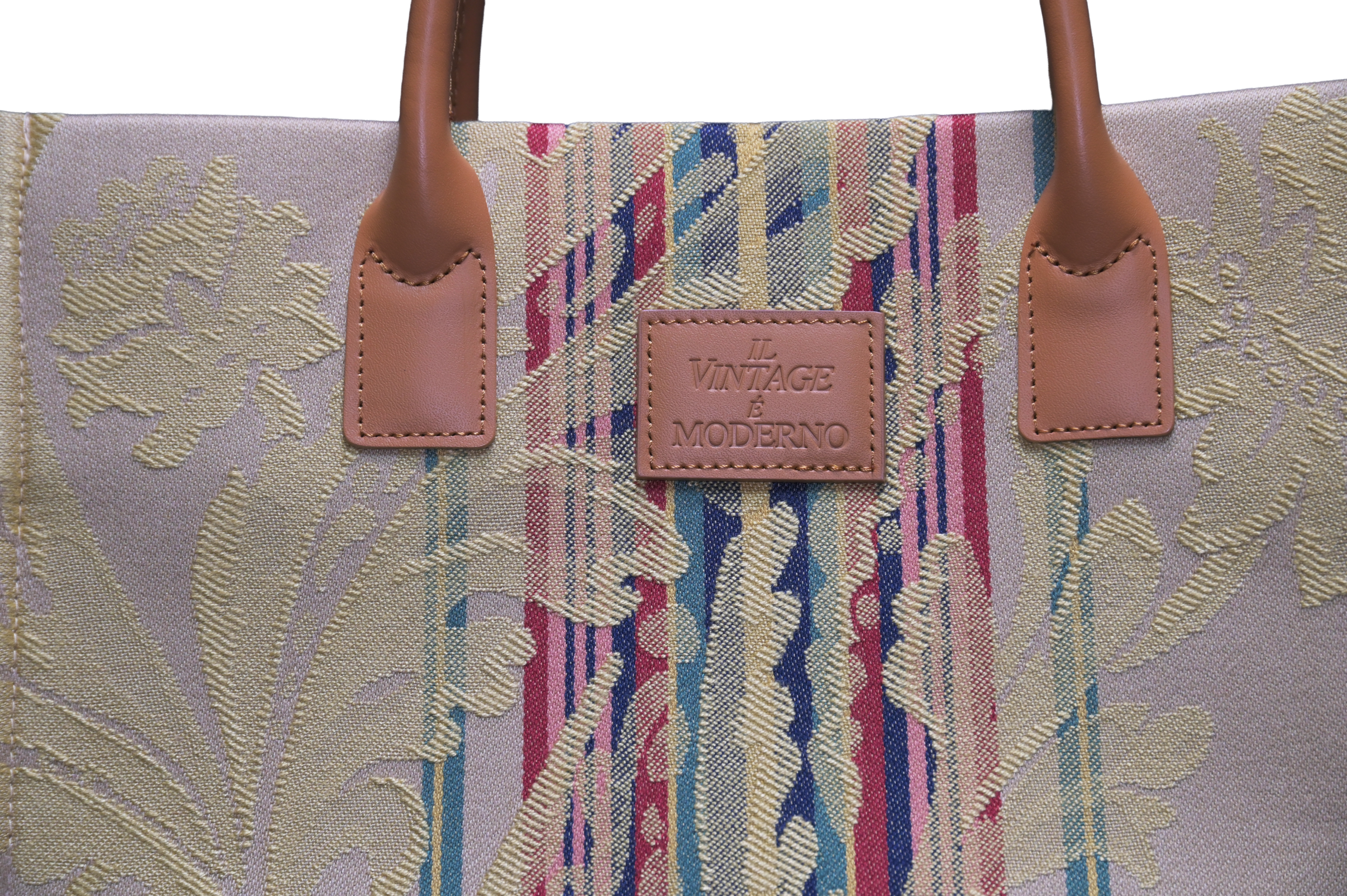 イタリア各地のコレクターの手を経て、大切に保管されていたからこそ保たれている、当時の鮮やかな発色と立体感。半世紀の時を超えて日本の職人が現代のトートバッグへと昇華させた、まさに「持ち歩く芸術品」です。